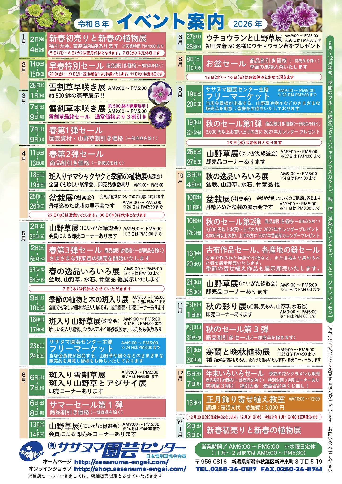 | 5月3日(火)〜 5月5日(木) | 春第3弾セールと山野草展(にいがた緑遊会) |