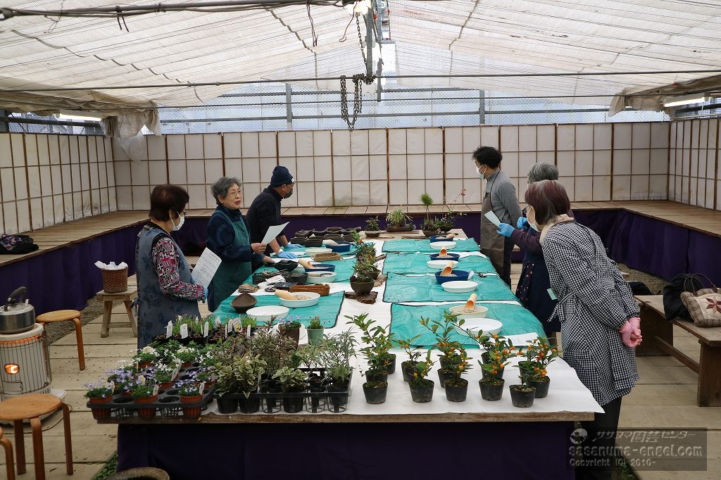 まもなく迎えるお正月を前に、お正月飾りの寄せ植えをご自分で作ることが目的です。ひとつお正月飾りがあるだけで、新年の雰囲気がずっと上がることと思います。まずは品種の選び方や用土の解説、そして実際に寄せ植えを作ってもらいました。