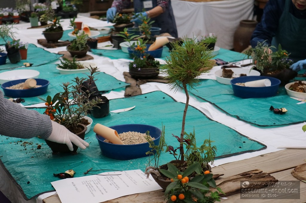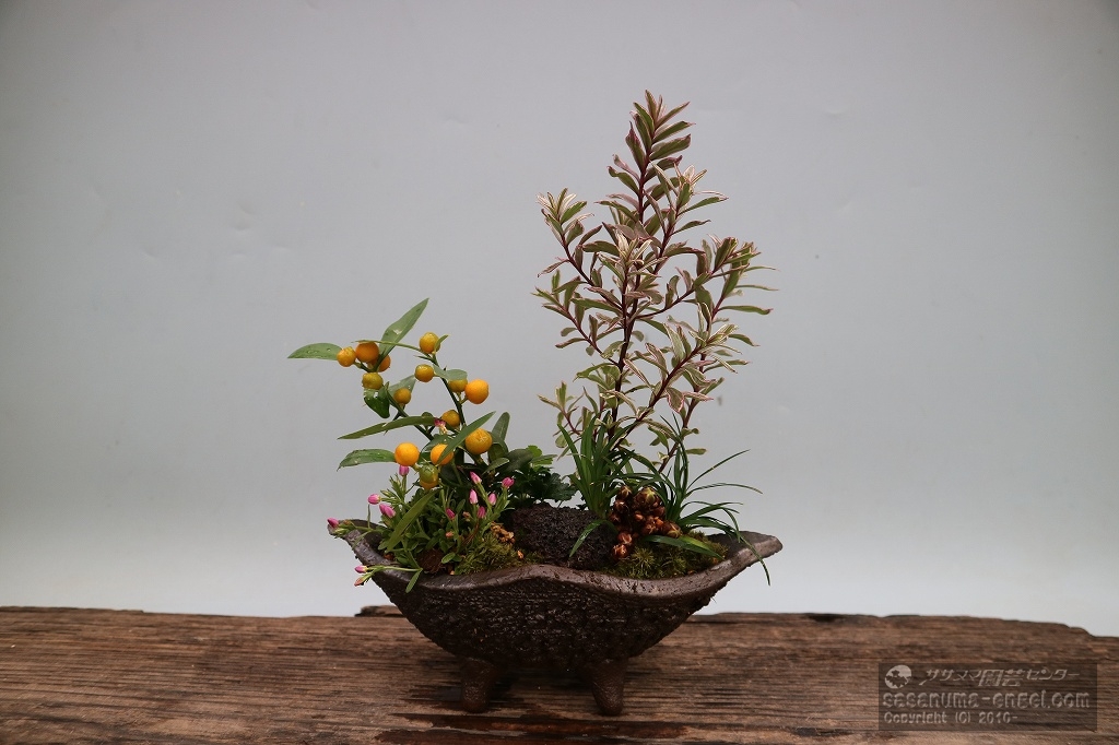 12月半ばの14日日曜日、当店展示室では「正月飾り寄せ植え教室」を開催致しました。講師は当店より笹沼文代が担当致しました。