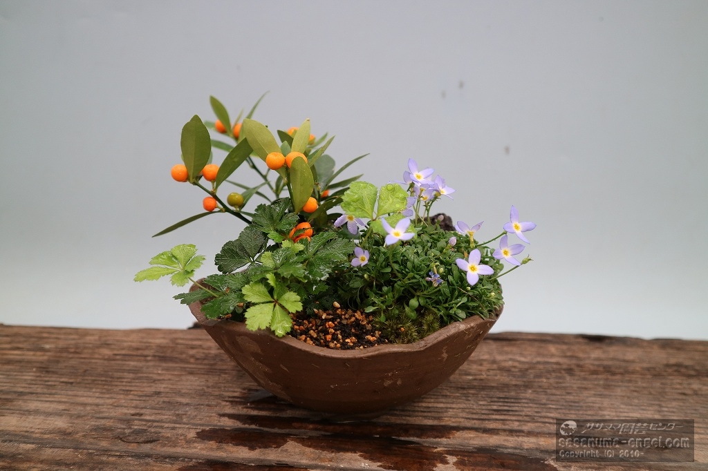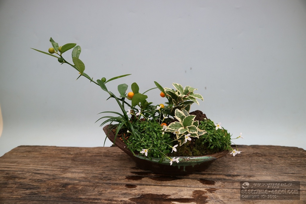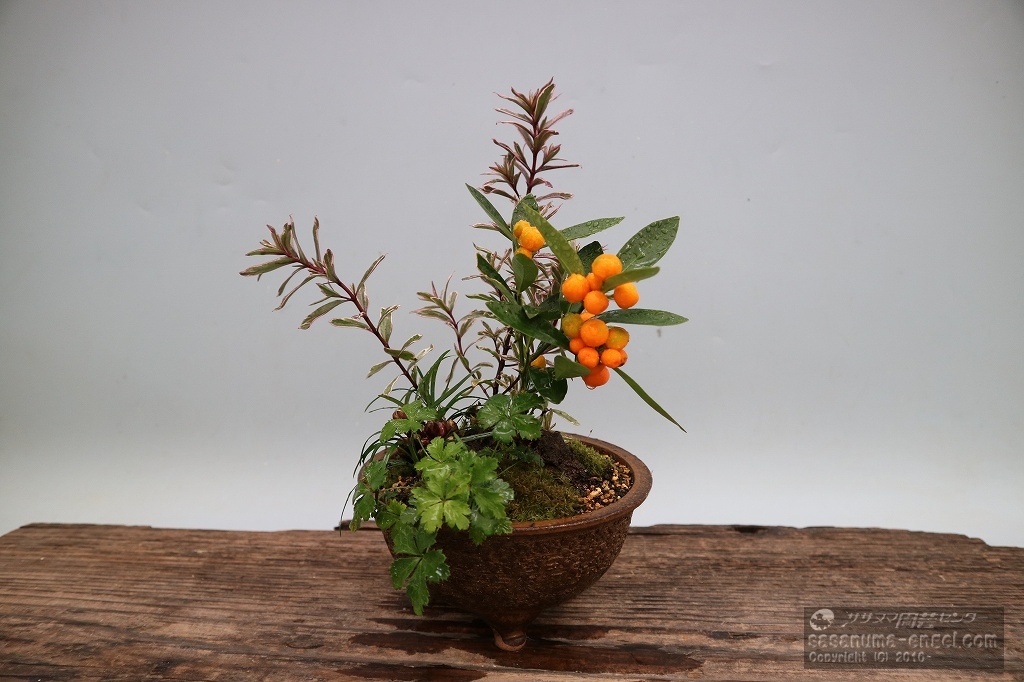 参加して下さった生徒さんによって、選ぶ植物が異なってきます。また今回は鉢も数種類用意し選んで頂きました。そのため、完成した鉢は見た目から違ったものになりました。いくつかを写真にてご紹介致します。