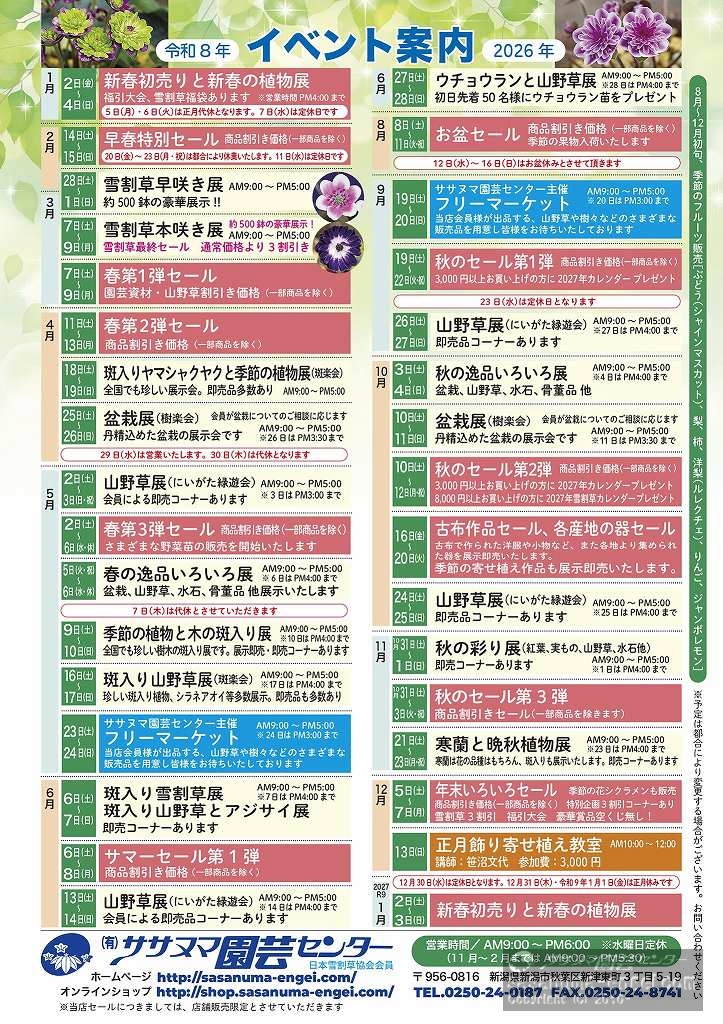 令和8年もササヌマ園芸センターのイベントをよろしくお願い申し上げます。
